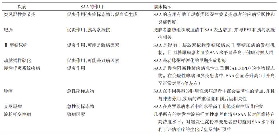 SAA在非感染性疾病中的作用及臨床意義