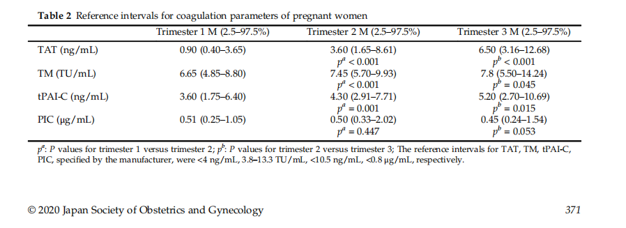 華北地區共收集190例健康孕產婦樣本:孕早期(妊娠5-12周)59例,孕中期(奸娠13-27周)60例,孕晚期(奸娠28-40周)71例,並在2.5%-97.5%的分布範圍建立了妊娠期特定參考區間,用於妊娠期VET的風險評估。