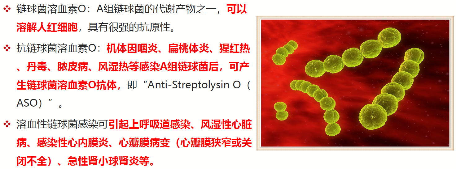 ASO是抗溶血性鏈球菌素O的一個簡稱,是A族溶血性鏈球菌的重要代謝產物之一。風濕性關節炎與A組乙型溶血性鏈球菌感染有關,檢測ASO能夠區分類風濕和風濕性關節炎,類風濕關節炎不導致ASO陽性。